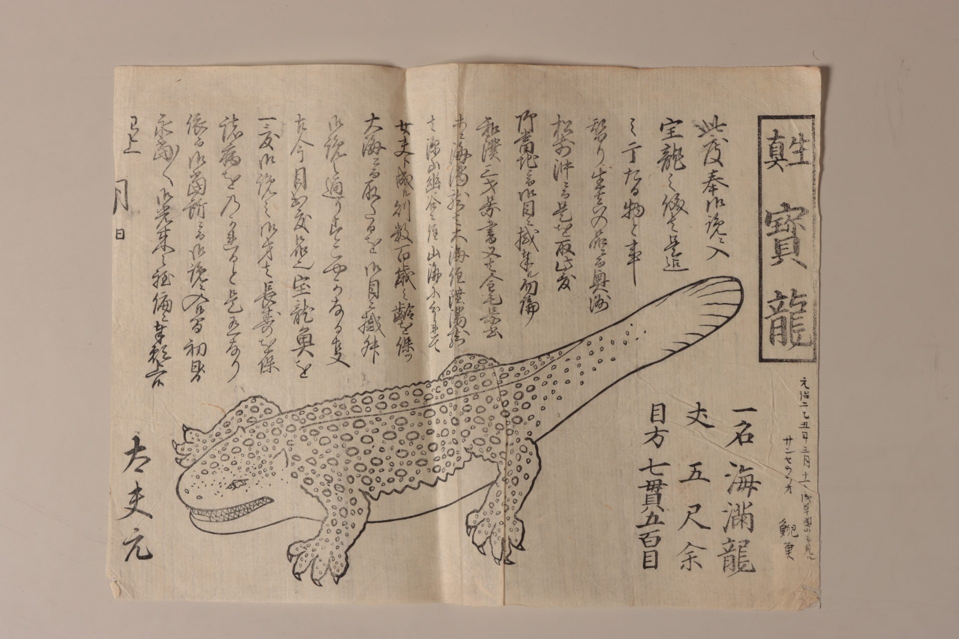墨書銘「元治二乙丑年三月十一日浅草関山ニテ見ル/サンセウウオ 鯢魚」