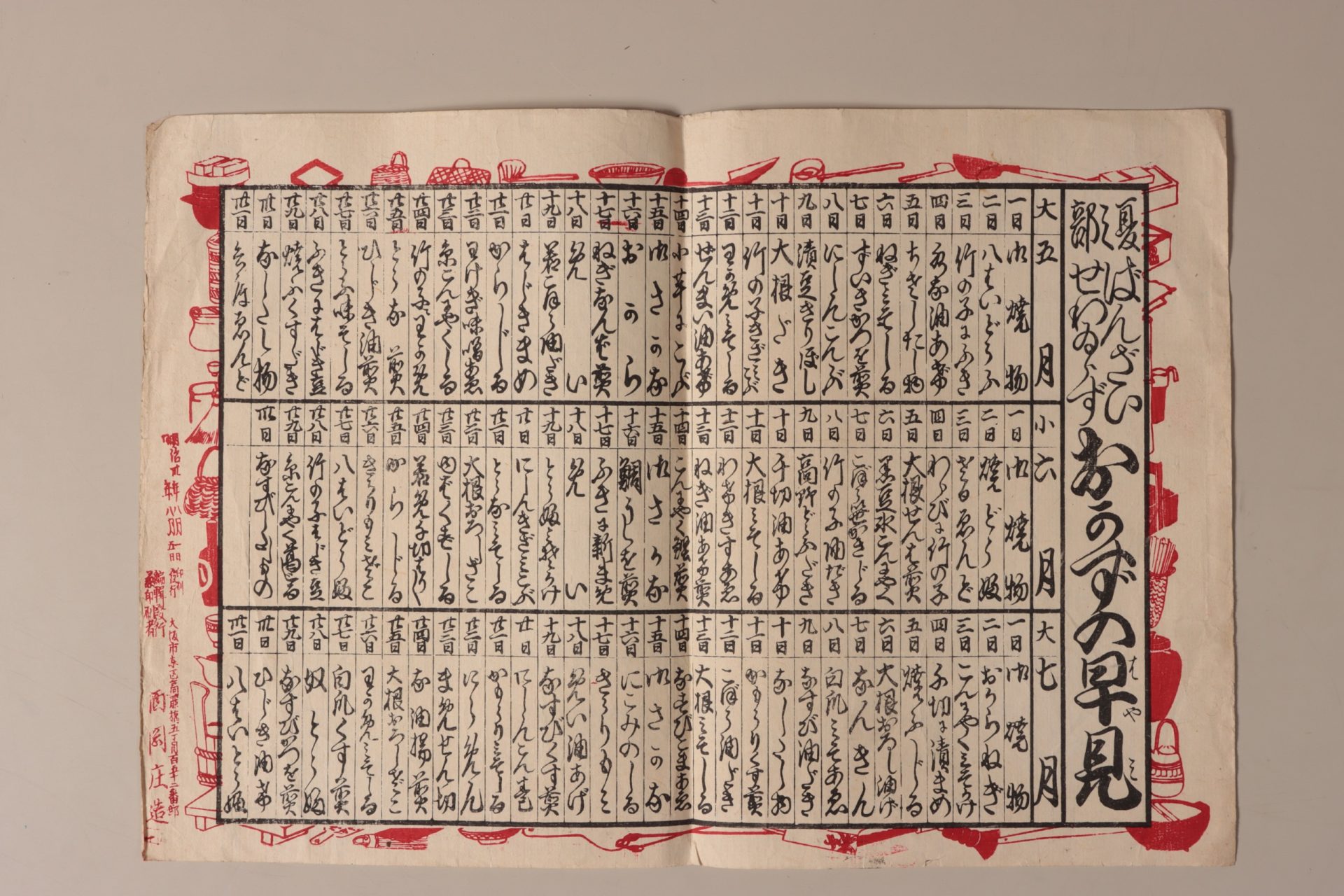 「夏之部ばんざいせわいらず おかずの早見」