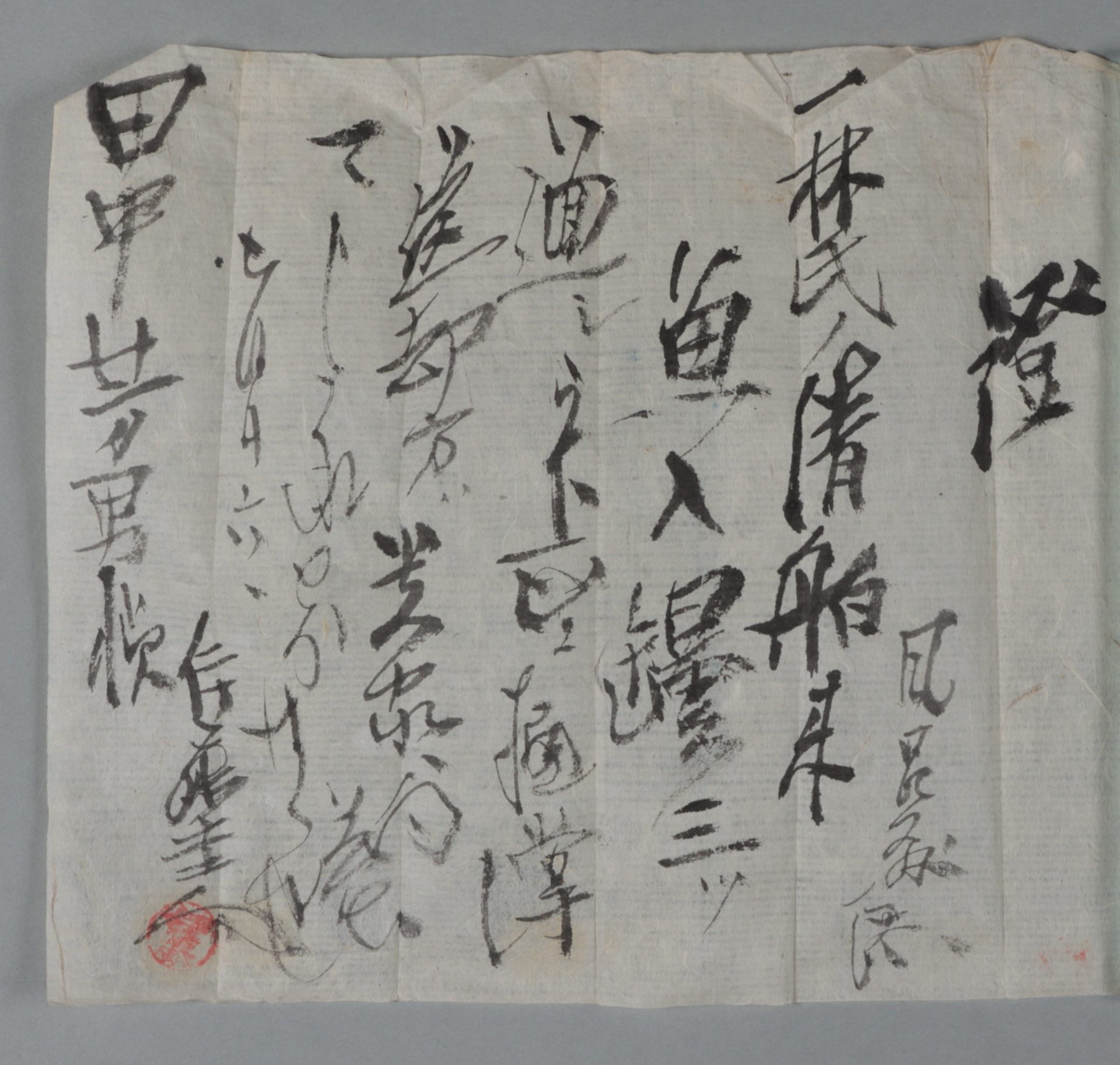 封筒入。岩崎の図 病気療養の様子 舶来魚瓶詰御礼
