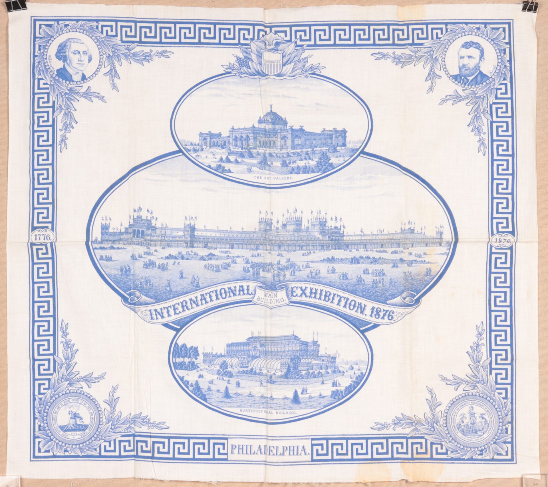 染付風のデザイン。七六展覧会目録番号160「博覧会記念服紗等」(三)の品か。