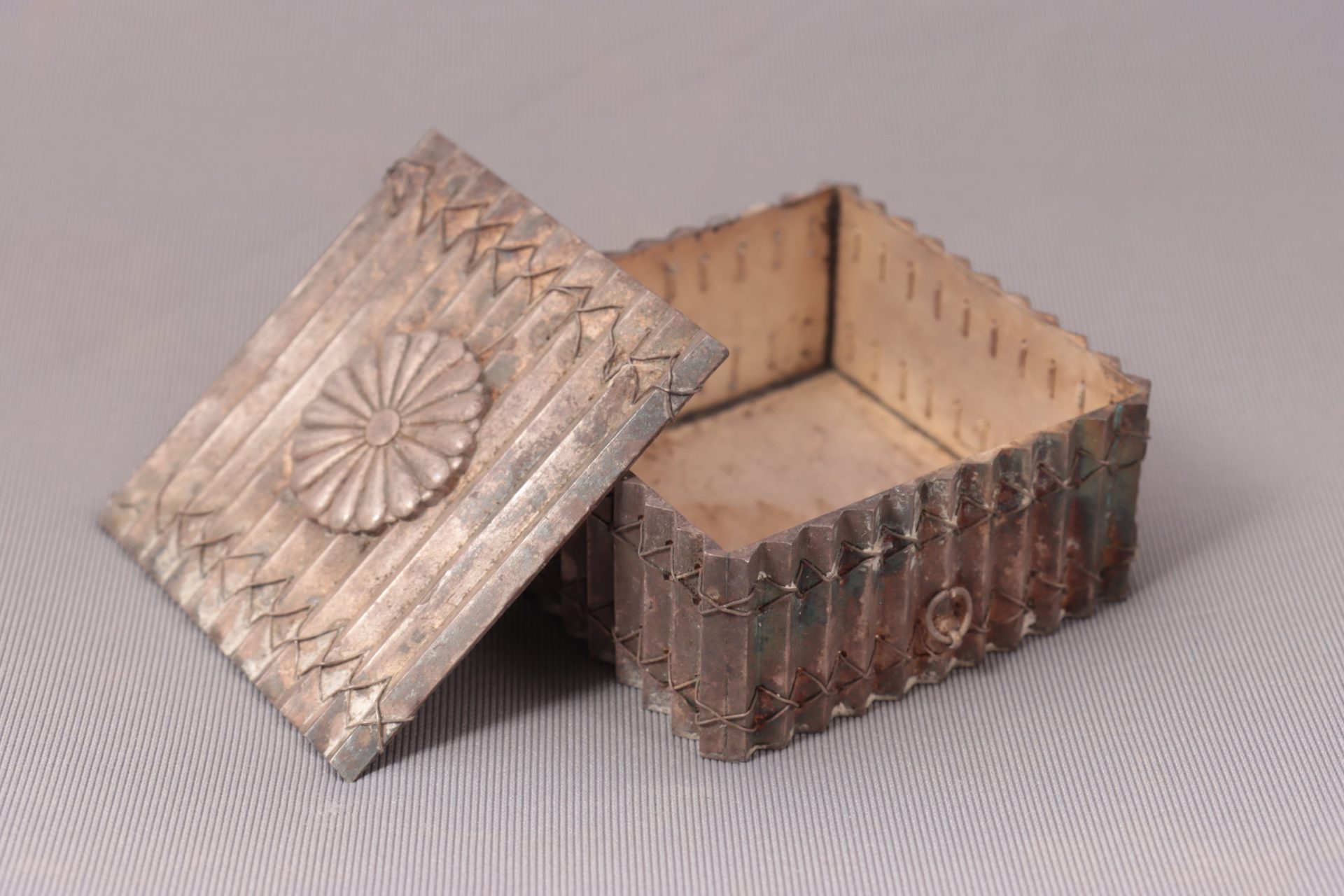 菊紋入。「同(大正4)年十二月八日 宮中ニ於テ能楽陪観ノ後豊明殿ノ夜宴ニ陪シ銀製菓子器一個ヲ賜ハル」(1-0137「男爵田中芳男履歴書」)と関係あり?